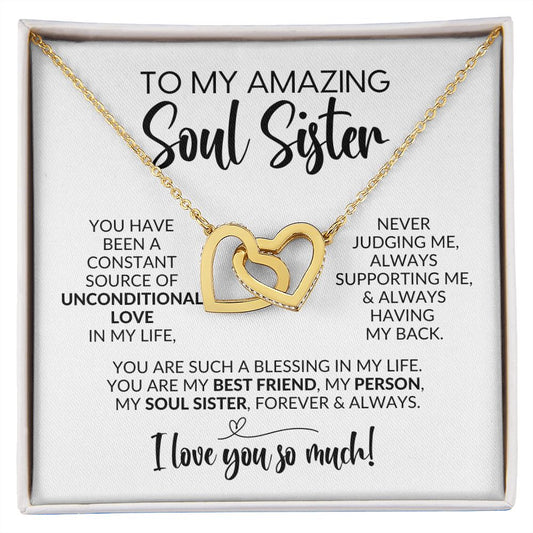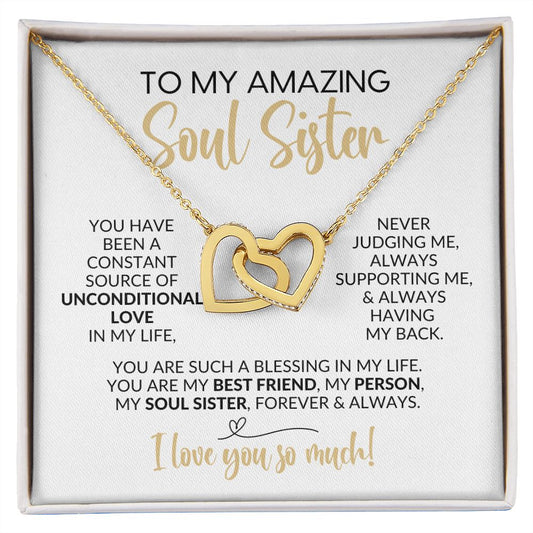 To My Soul Sister | Constant Source of Unconditional Love | Interlocking Hearts Necklace