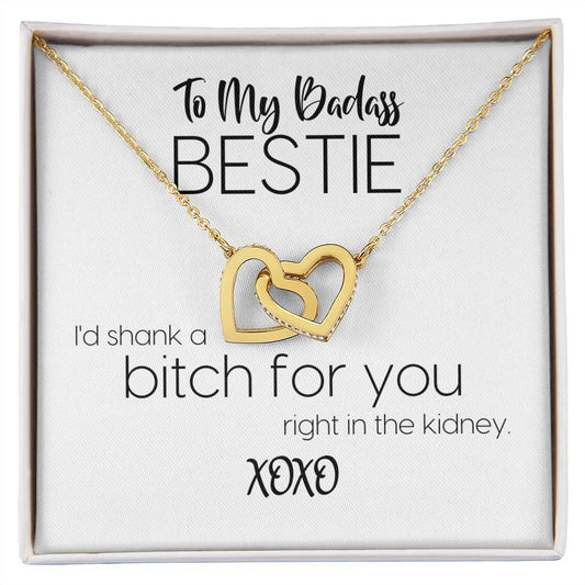 To My Badass Bestie | I'd Shank A Bitch For You | Interlocking Hearts Necklace