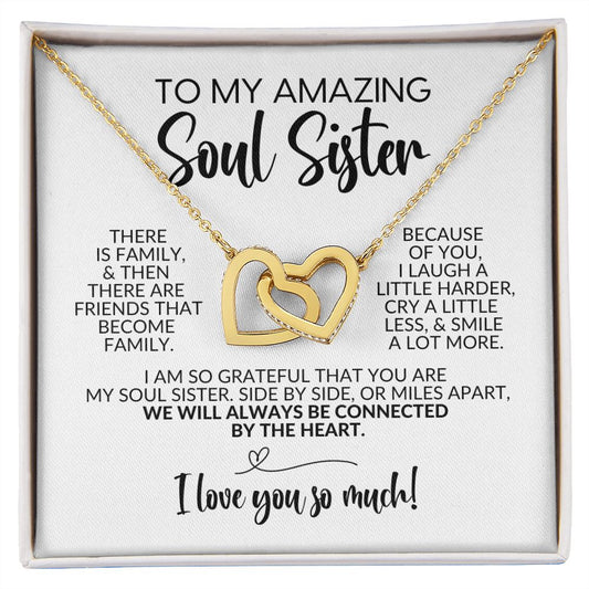 To My Soul Sister | Friends That Become Family | Interlocking Hearts Necklace