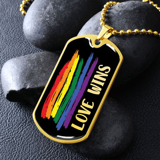 Love Wins Rainbow Dog Tag Necklace | Gay Pride Necklace