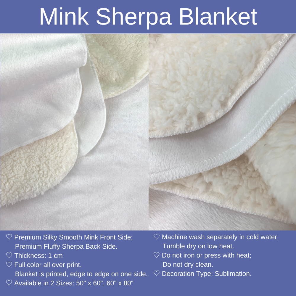 ♡ Premium Silky Smooth Mink Front Side; Premium Fluffy Sherpa Back Side.