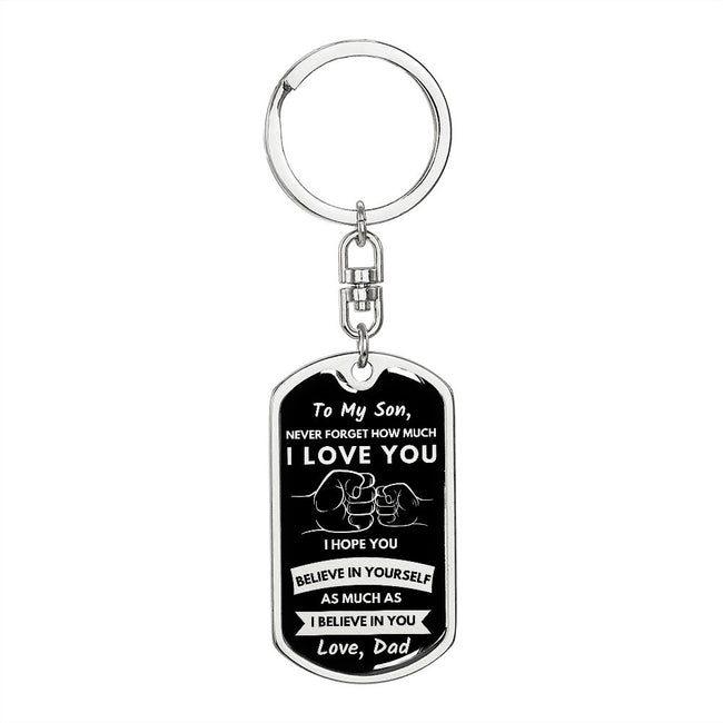 Are You Looking for the Perfect Gift for Your Son? Whether it's his Birthday, Graduation, Christmas, or another special occasion, this keychain is sure to be a heartfelt gift. You can even customize it further by having a special message engraved on the back of the keychain. Purchase this BEST SELLER and we guarantee it will exceed your highest expectations!